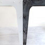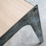 Elaborada mesa acero y madera. Sin soldaduras, su ensamblaje se ha realizado con elementos de unión que aportan un toque vintage.