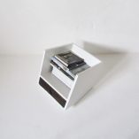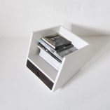 Este revistero de madera recuperada doble consta de formas sencillas. Basado en el movimiento de un balancín, nos hace sentir que está emergiendo del suelo. Renaciendo, volviendo a la vida, sin quererse marchar. Dividido en dos estancias, una el revistero y la otra un pequeño cajón con tirador circular fresado. El revistero queda a mano, facilitando el acceso a cualquier ejemplar que deseemos. La parte externa está elaborada con madera DM lacada de color blanco. La delantera del cajón está realizada con piezas de una antigua puerta de una casa de campo, de madera maciza.
